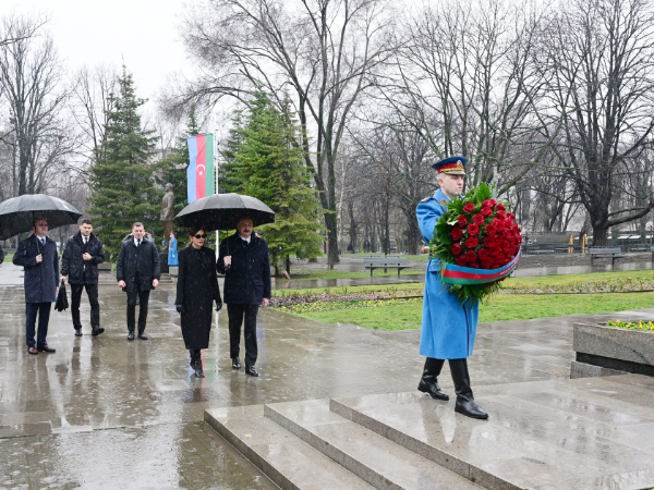 Prezident İlham Əliyev Belqradda Ümummilli Lider Heydər Əliyevin və görkəmli serb yazıçısı Milorad Paviçin abidələrini ziyarət edib