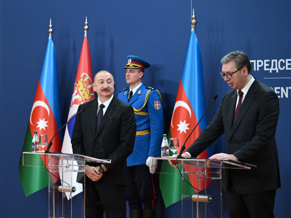 Azərbaycan Prezidenti İlham Əliyev və Serbiya Prezidenti Aleksandar Vuçiç mətbuata bəyanatlarla çıxış ediblər