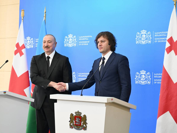 Azərbaycan Prezidenti və Gürcüstanın Baş naziri mətbuata bəyanatlarla çıxış ediblər