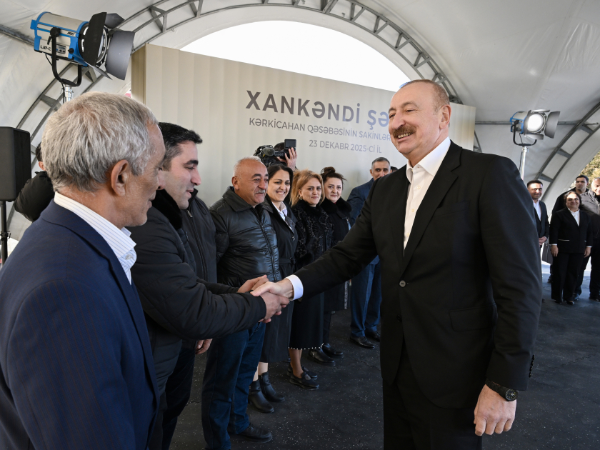 Prezident İlham Əliyev Kərkicahan qəsəbəsində buraya köçən sakinlərlə görüşüb