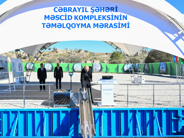 Prezident İlham Əliyev Cəbrayıl şəhər məscidinin təməlini qoyub