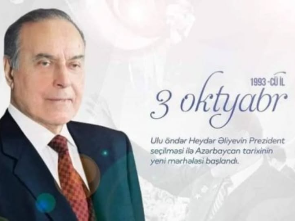 1993-cü il, 3 oktyabr: Ulu öndər Heydər Əliyevin Prezident seçilməsi ilə Azərbaycan tarixinin yeni mərhələsi başlandı.