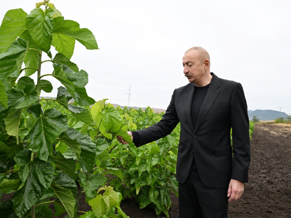 Prezident İlham Əliyev Xocalının Daşbulaq kəndində tut bağında görülmüş işlərlə tanış olub