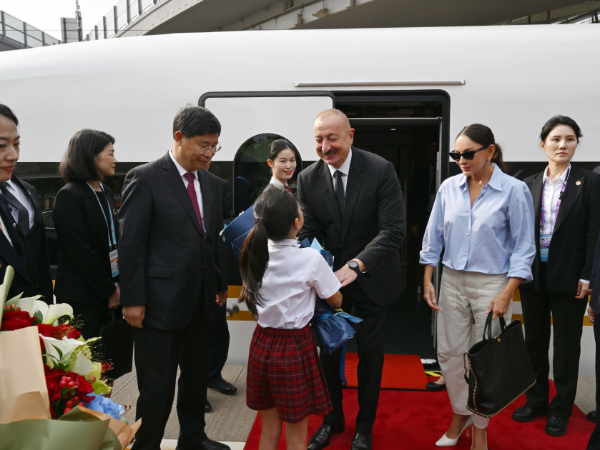 Azərbaycan Prezidenti İlham Əliyev Çinin Tiencin şəhərindən qatarla paytaxt Pekinə gəlib
