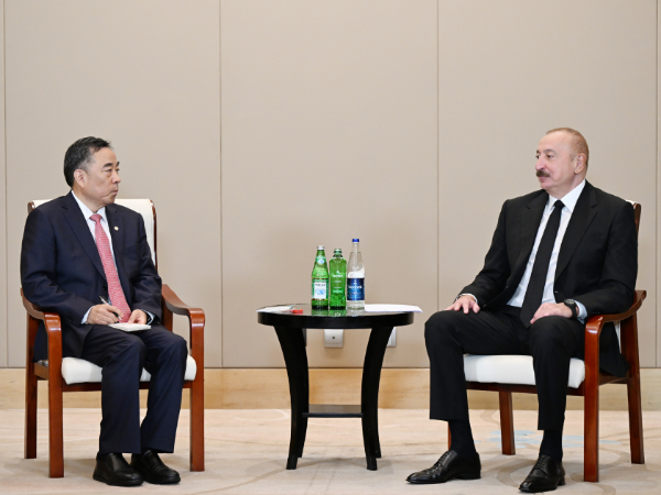 Prezident İlham Əliyev Tiencində "CETC" korporasiyasının baş direktoru ilə görüşüb