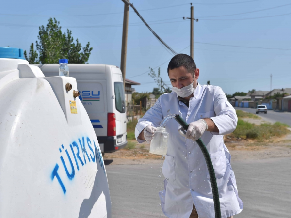Su çənləri “Azərsu”nun mütəxəssisləri tərəfindən yuyulub dezinfeksiya edilib. Mərkəzi Laboratoriyanın səyyar laboratoriyaları vasitəsilə nümunələr götürülərək analizlər aparılıb və istifadəsinə icazə verilib. Eyni zamanda, səyyar laboratoriyalar tərəfindən suyun keyfiyyəti mütəmadi olaraq nəzarətdə saxlanılır. Su çənlərindən suyun götürülməsinə və bərabər paylanmasına nəzarət olunur, israfçılığa yol verilməməsi üçün əhali arasında maarifləndirmə işləri aparılır. Çənlərin mütəmadi olaraq su ilə doldurulması məqsədilə sudaşıyan nəqliyyat vasitələri gücləndirilmiş iş rejimində fəaliyyət göstərir.