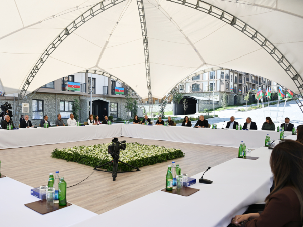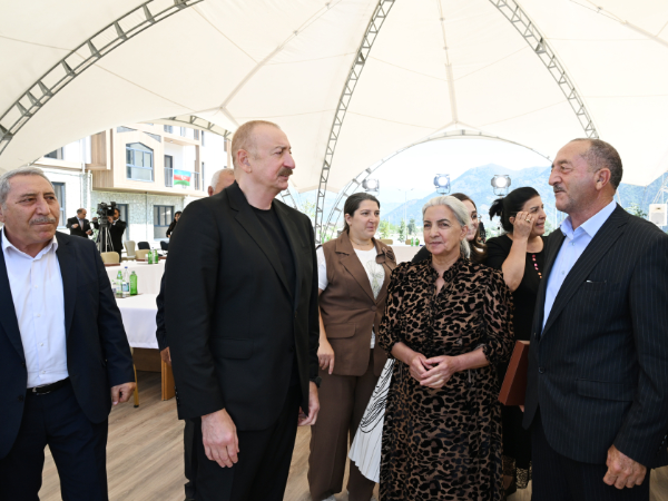 Bizim işimiz quruculuqdur. Onlar bütün şəhər və kəndlərimizi viran qoyublar. Kəlbəcər şəhərində bir dənə salamat bina qalmamışdır. Kəlbəcərin heç bir kəndində bir dənə də bina qalmamışdır. O, vəhşilik idi. O, insanlığa sığmayan hərəkət idi və bunu bir nəfər yox, 10 nəfər yox, kütləvi surətdə edirdilər. Onlar gərək bu məsələlərlə məşğul olsunlar, hansı cəmiyyətdə yaşayır Ermənistan? O cəmiyyət ki, işğal dövründə talançılığı özü üçün əsas gəlir mənbəyi etmişdir. Bu cəmiyyət xəstədir və mən bunu açıq deyirəm. Mən heç kimi təhqir etmək istəmirəm. Biz onlara nə etmişik ki, nə pislik etmişik ki, bu qədər vəhşiliklə üz-üzə qalaq?! Bütün şəhər və kəndlər dağıdılıb, məscidlər dağıdılıb, təhqir edilib, insanlar qətlə yetirilib, öldürülüb, yandırılıb. Hətta İkinci Qarabağ müharibəsindən sonra bizdən vasitəçilər tərəfindən vaxt istəmişdilər, burada öz şələ-şülələrini yığmaq üçün. Biz hətta vaxt da verdik onlara. Nə etdilər? Yandırdılar, ağacları qırdılar. İnsan bunu edər? Axı, bunu təkcə separatçıların başçıları etməyiblər. Kütləvi surətdə ediblər. Yəni, biz bilməliyik ki, kiminlə üz-üzəyik, bizim qonşumuz kimdir. Keçmişimizi heç vaxt unutmamalıyıq və ayıq olmalıyıq. Əminəm ki, bütün bu amillər imkan verəcək ki, üstünlük hər zaman bizdə olsun. Bu gün bunu yenə də deyirəm, biz qalib xalq kimi bəyan edirik. Biz o pisliyi, vəhşiliyi unutmayacağıq. Ancaq biz bundan sonra heç kimlə müharibə aparmaq fikrində deyilik. Əgər bizə qarşı hər hansı bir təhlükə çıxarsa, onda yenə də bizim “dəmir yumruğ”umuzu hər kəs görəcək. Bu gün bu gözəl binaların ətrafında bizim görüşümüz də çox böyük rəmzi məna daşıyır. Onlar buranı dağıdıblar, biz isə qurub-yaratmışıq və sizi bu münasibətlə bir daha təbrik edirəm. Rahat yaşayın, sizə cansağlığı, xoşbəxtlik arzulayıram. Sağ olun.