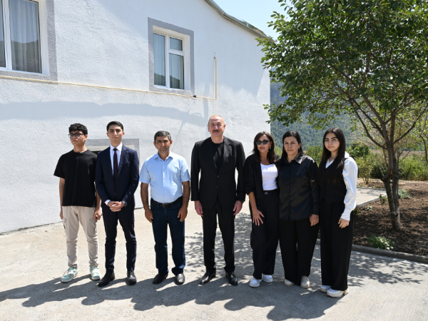 Sonra Prezident İlham Əliyev və birinci xanım Mehriban Əliyeva kənd sakini Baxşalı Hətəmovun evində oldular.