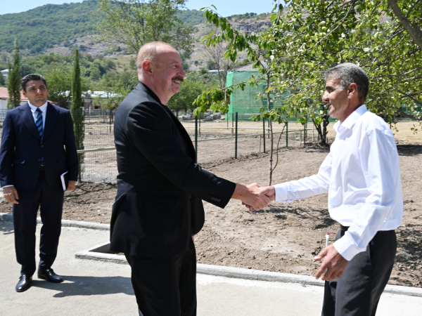 Prezident İlham Əliyev: İndi isə gözəl, mənzərəli bir əraziyə köçmüsünüz. Burada yaşamaq üçün hər şey var.