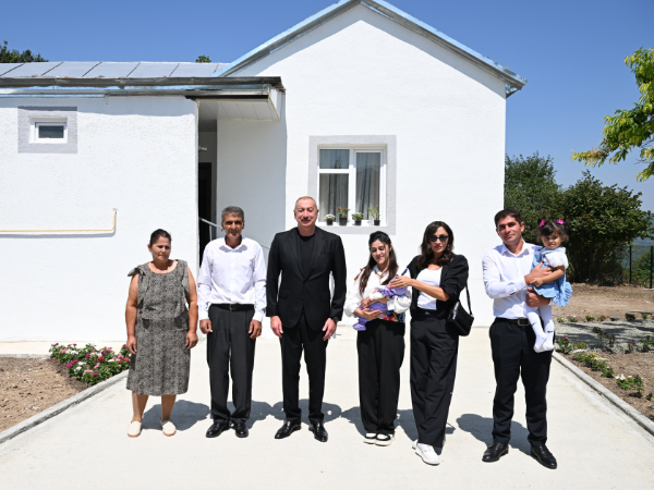 Daha sonra dövlətimizin başçısı və birinci xanım kənd sakini Rəfayət Musayevin evinə gəldilər.