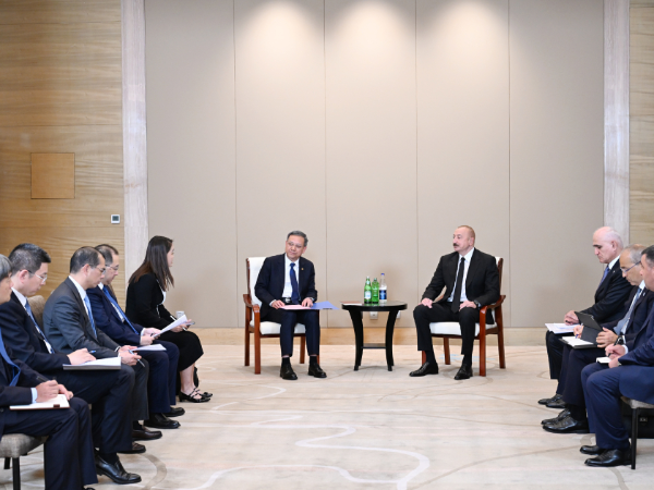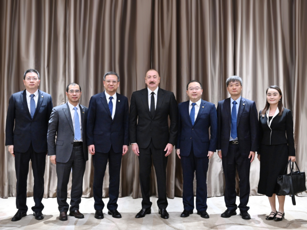 Prezident İlham Əliyev Tiencində "China Energy Engineering Corporation Limited" şirkətinin rəhbəri vəzifəsini icra edən Ni Cen ilə görüşüb