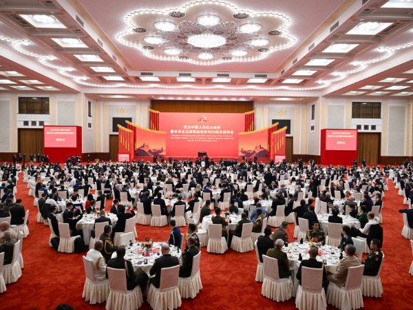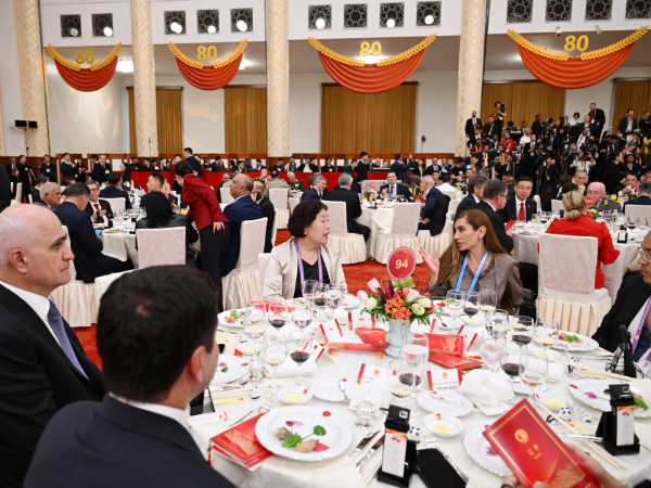Pekində keçirilən paradda iştirak edən nümayəndə heyətlərinin başçılarının və xanımlarının şərəfinə ziyafət verilib