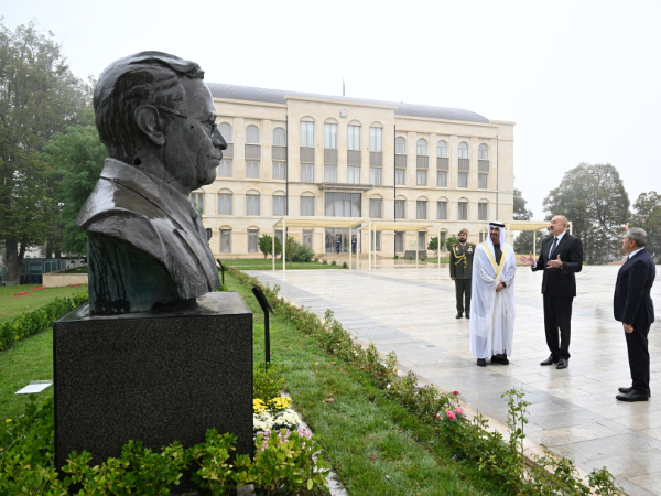 Sentyabrın 16-da Azərbaycan Respublikasının Prezidenti İlham Əliyev və Birləşmiş Ərəb Əmirliklərinin Prezidenti Şeyx Məhəmməd bin Zayed Al Nəhyan Şuşada Azərbaycanın tanınmış şəxsiyyətləri Natəvanın, Bülbülün və Üzeyir Hacıbəylinin erməni işğalçıları tərəfindən güllələnmiş heykəllərinə baxıblar.