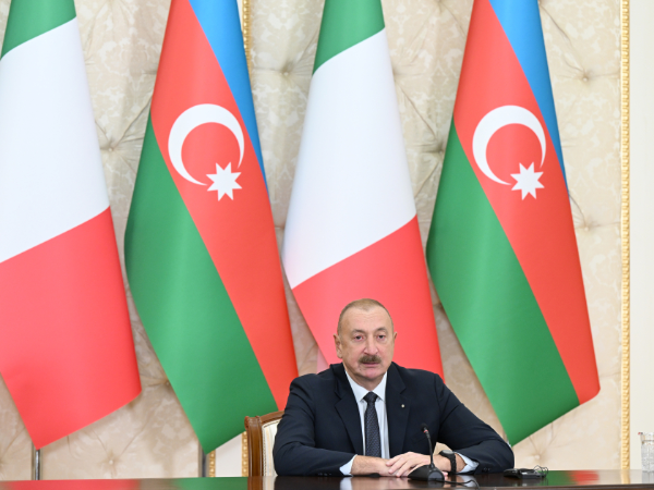 Bizim aramızda iki strateji tərəfdaşlıq sənədi var. Birinci sənəd 2015-ci ildə imzalanmışdır. İkinci sənəd - Hərtərəfli Strateji Tərəfdaşlıq haqqında Birgə Bəyannamə isə 5 il bundan əvvəl imzalanmışdır. Bu illər ərzində münasibətlərimiz çox sürətlə və müxtəlif istiqamətlər üzrə inkişaf edib. Siyasi əlaqələr ən yüksək səviyyədədir. Qeyd etdiyim kimi, biz tez-tez görüşürük. İqtisadi sahədə İtaliya bizim üçün birinci ticarət tərəfdaşıdır və ildən-ilə ticarət dövriyyəmiz artmaqdadır. Energetika sahəsində bir çox önəmli layihələr icra edilmişdir. Xüsusilə Azərbaycan neftini və qazını İtaliyaya ixrac etməklə biz dünya bazarlarına geniş həcmdə öz təbii resurslarımızı göndərə bilmişik. Eyni zamanda, bir çox ölkələrin enerji təhlükəsizliyinə də öz töhfəmizi vermişik.