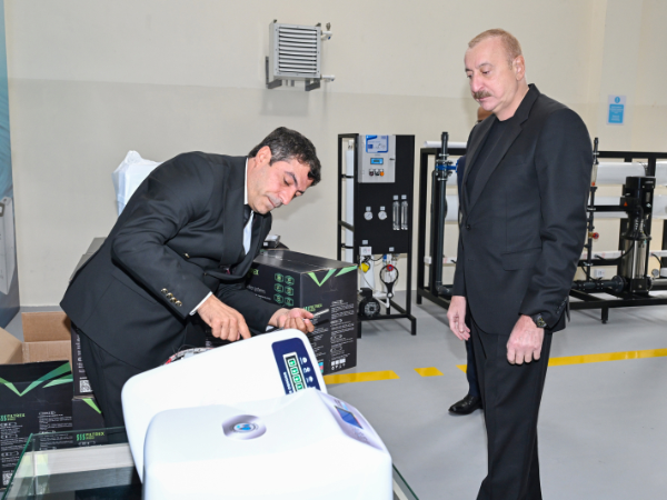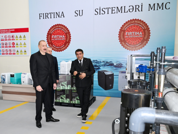 Azərbaycan Respublikasının Prezidenti İlham Əliyev oktyabrın 28-də Sabirabad Sənaye Məhəlləsində “Fırtına Su Sistemləri” Məhdud Məsuliyyətli Cəmiyyətinin (MMC) su filtrlərinin istehsalı müəssisəsinin fəaliyyəti ilə tanış olub.