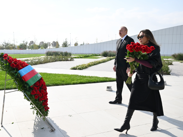 Birinci xanım Mehriban Əliyeva abidənin önünə gül dəstələri düzdü.