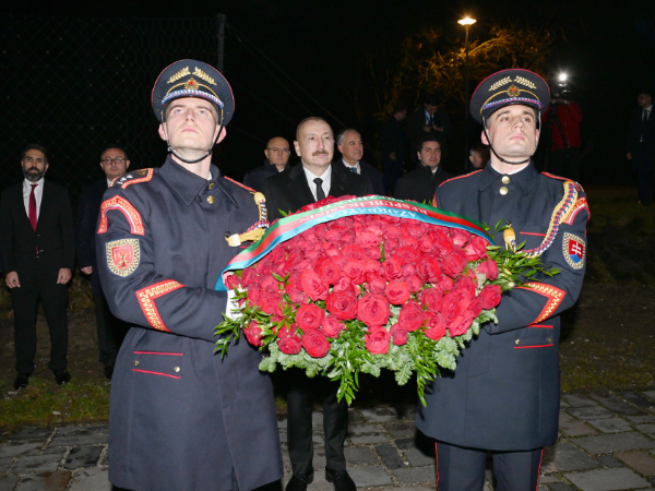 Prezident İlham Əliyev və Prezident Peter Pelleqrini abidənin önünə əklil qoydular.