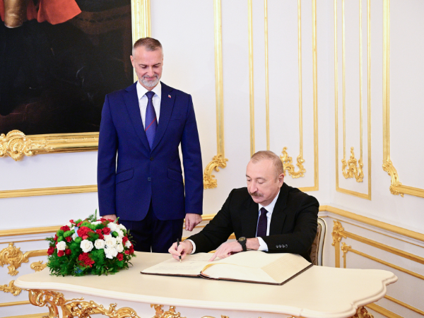 Azərbaycan Prezidenti xatirə kitabını imzaladı.