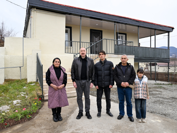 Sonra Prezident İlham Əliyev kənd sakini Sarvan Abbasovun ailəsinə baş çəkdi, yeni evdə yaradılmış şəraitlə tanış oldu.