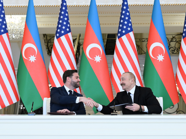 AZƏRTAC xəbər verir ki, sənədi Azərbaycan Respublikasının Prezidenti İlham Əliyev və Amerika Birləşmiş Ştatlarının Vitse-prezidenti Cey. Di. Vens imzalayıblar.