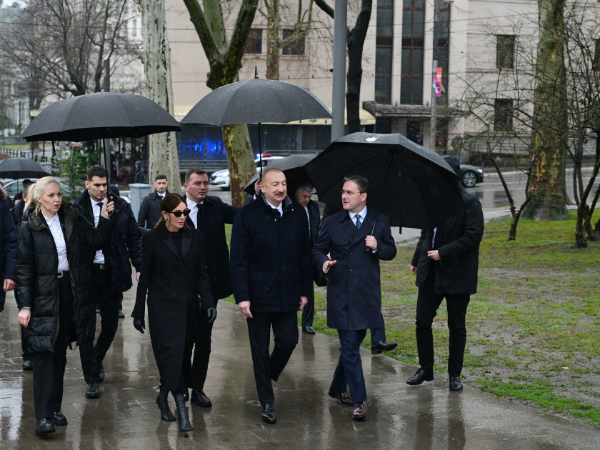 Serbiya Respublikasında rəsmi səfərdə olan Azərbaycan Respublikasının Prezidenti İlham Əliyev və birinci xanım Mehriban Əliyeva fevralın 15-də Belqraddakı Taşmaydan parkında Ümummilli Lider Heydər Əliyevin və görkəmli serb yazıçısı Milorad Paviçin abidələrini ziyarət ediblər.