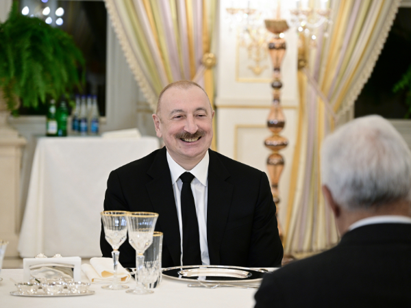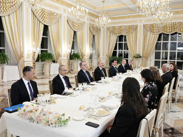 Prezident İlham Əliyevin Avropa İttifaqı Şurasının Prezidenti ilə rəsmi nahar əsnasında geniş tərkibdə görüşü olub