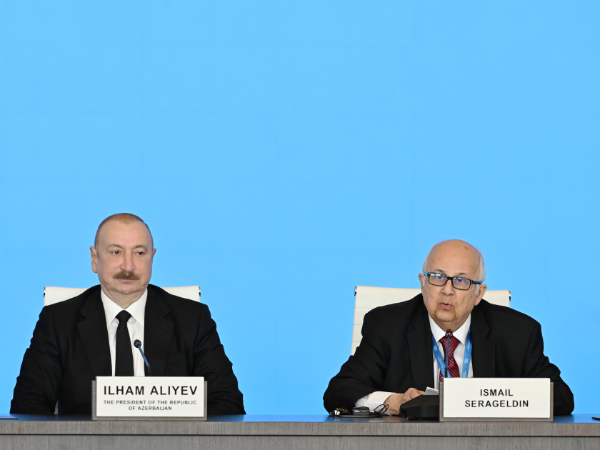 XIII Qlobal Bakı Forumunu açıq elan edən Nizami Gəncəvi Beynəlxalq Mərkəzinin həmsədri İsmail Serageldin tədbir iştirakçılarını salamladı, Forumda aparılan müzakirələrin xüsusi əhəmiyyət daşıdığını vurğuladı. Sonra çıxış üçün sözü Prezident İlham Əliyevə verdi.