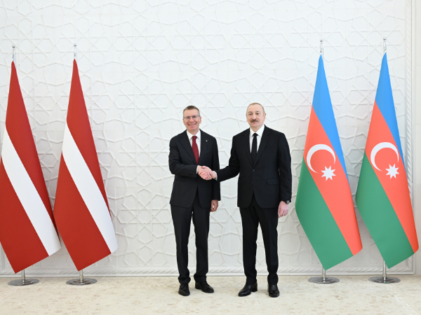 Azərbaycan Prezidenti İlham Əliyev Latviya Prezidenti Edqars Rinkeviçsi qarşıladı.