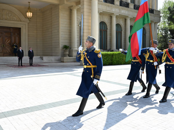 Fəxri qarovul dəstəsi hərbi marşın sədaları altında Azərbaycan Prezidenti İlham Əliyevin və Latviya Prezidenti Edqars Rinkeviçsin qarşısından keçdi.